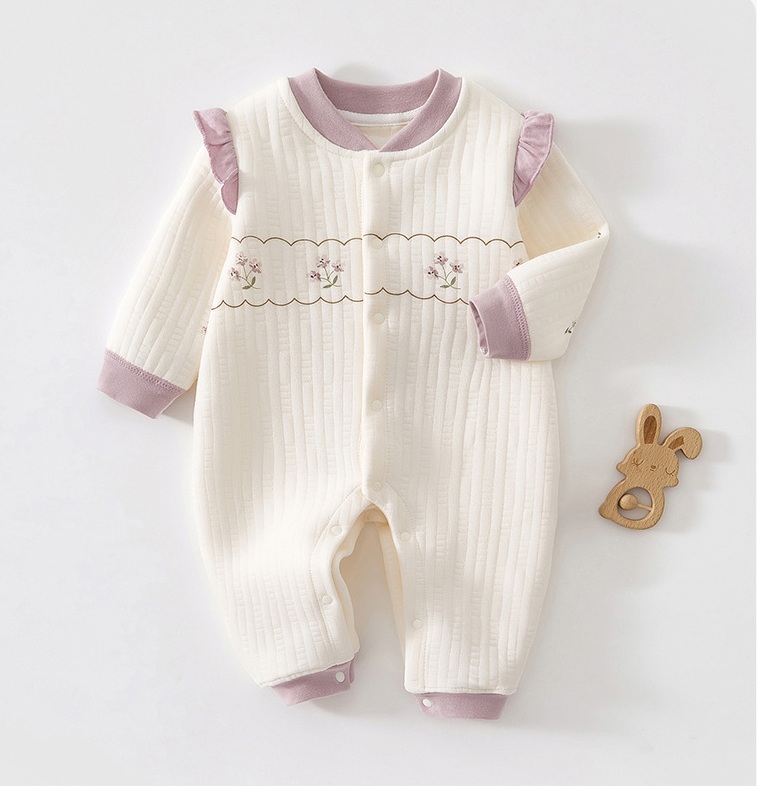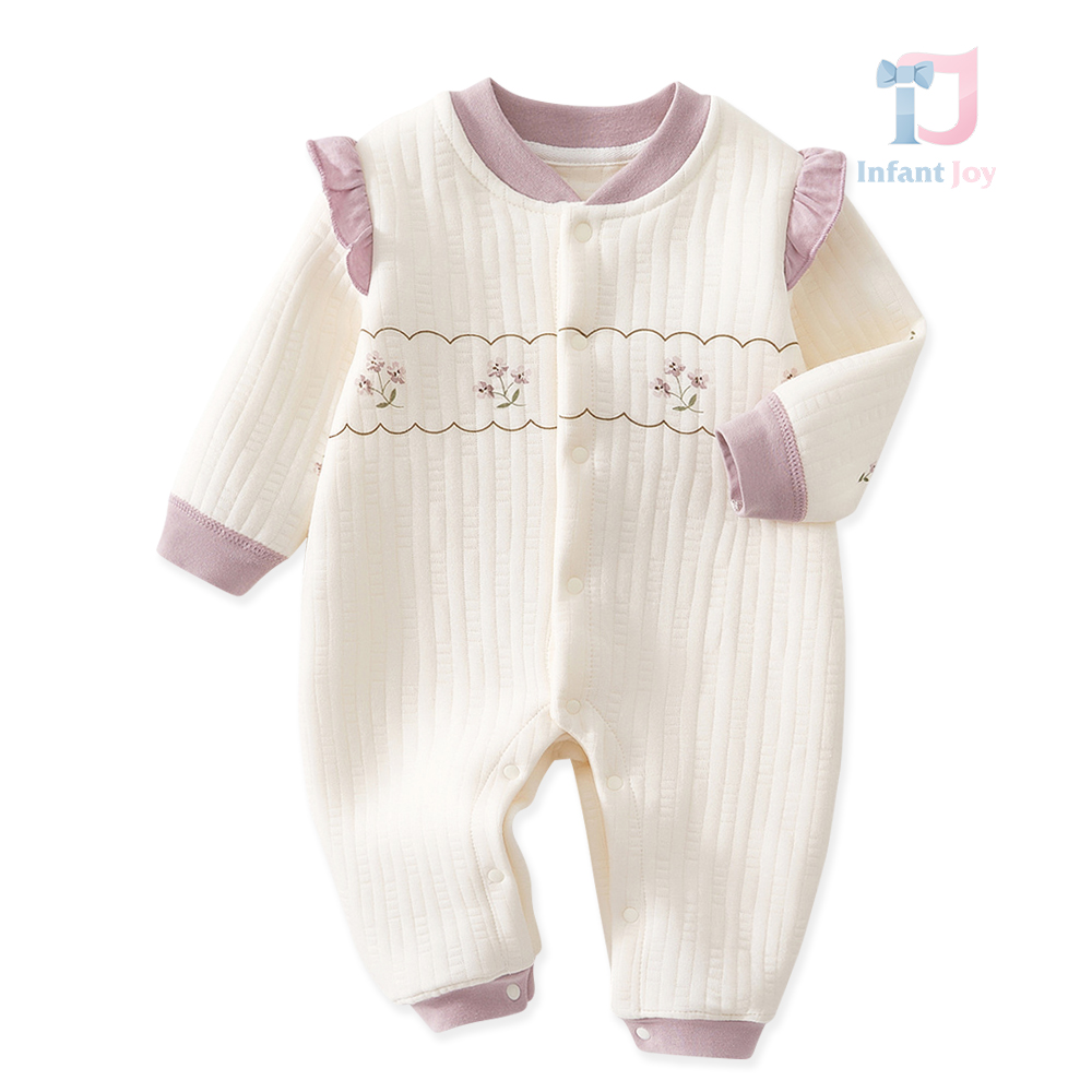 💐Salopetă cu mânecă lungă, confecționată din bumbac moale și respirabil cu textură costată, delicat cu pielea sensibilă a bebelușului.