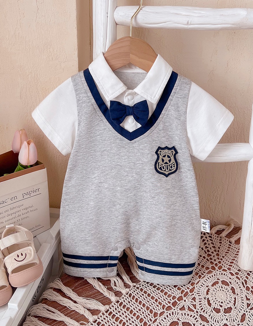 🚓 Iluzie de cămașă cu papion cusut și inserție în formă de V, contrastantă, ce imită un veston – oferă un aspect festiv complet, fără haine suplimentare.