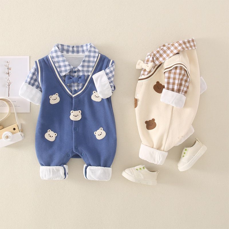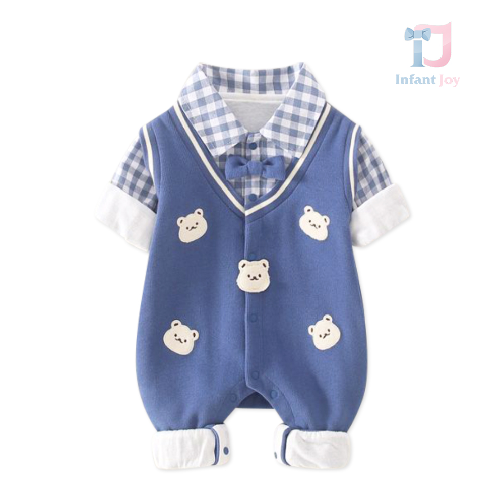 😎Model cu papion aplicat și numeroase imprimeuri cu ursuleți pentru un aspect drăgălaș.