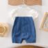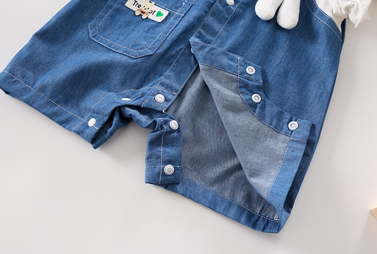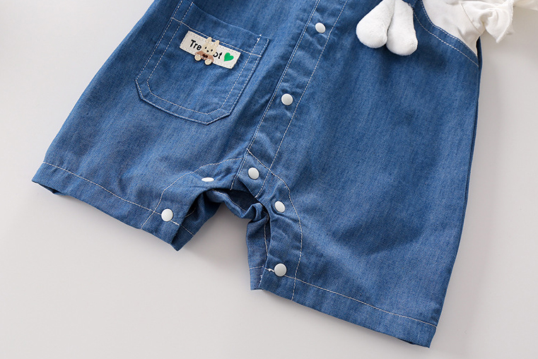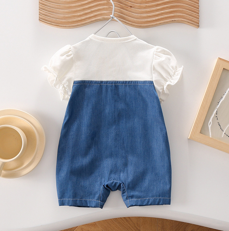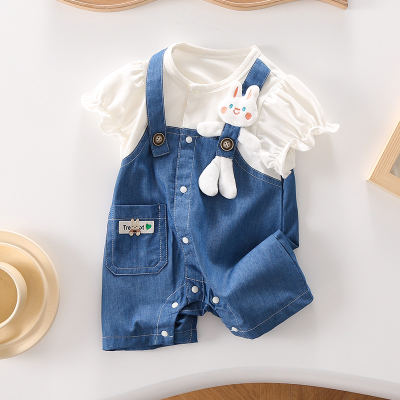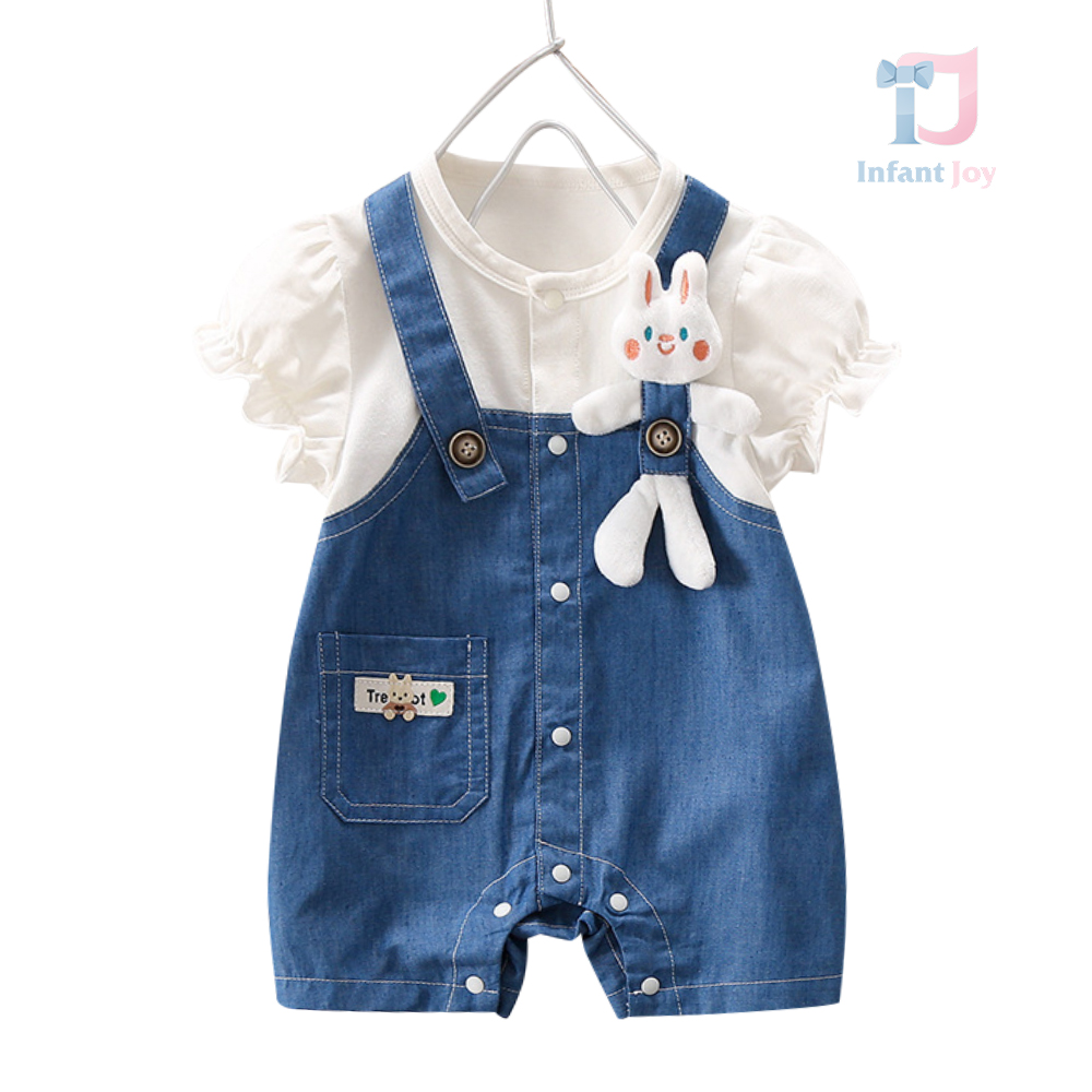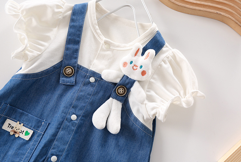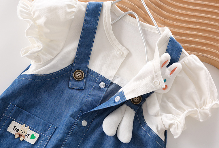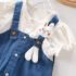 Salopetă cu denim, mânecă buffan și iepuraș 3D Trendy Bunny