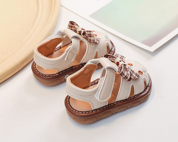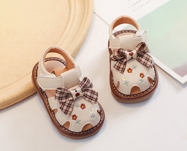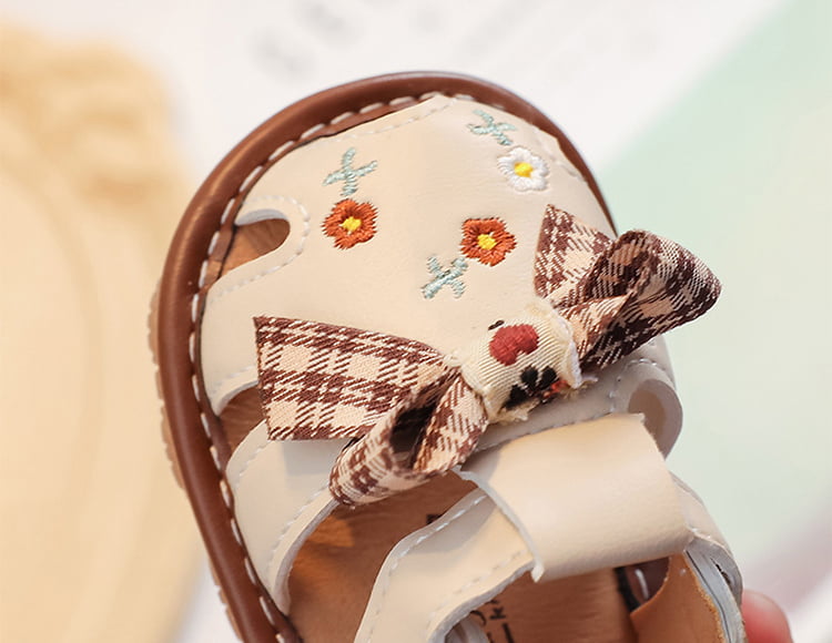 Sandale cu inchidere velcro broderie si panglici Miss Flora