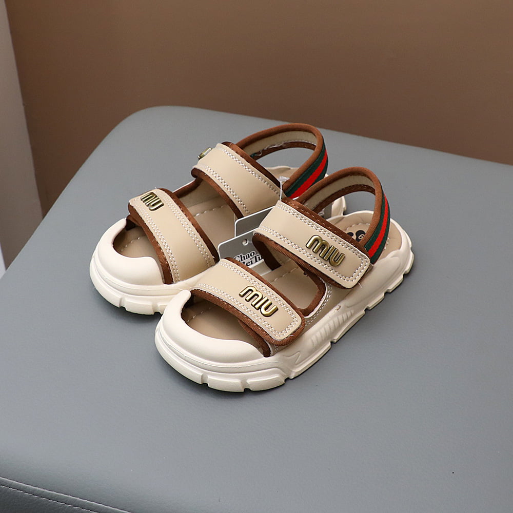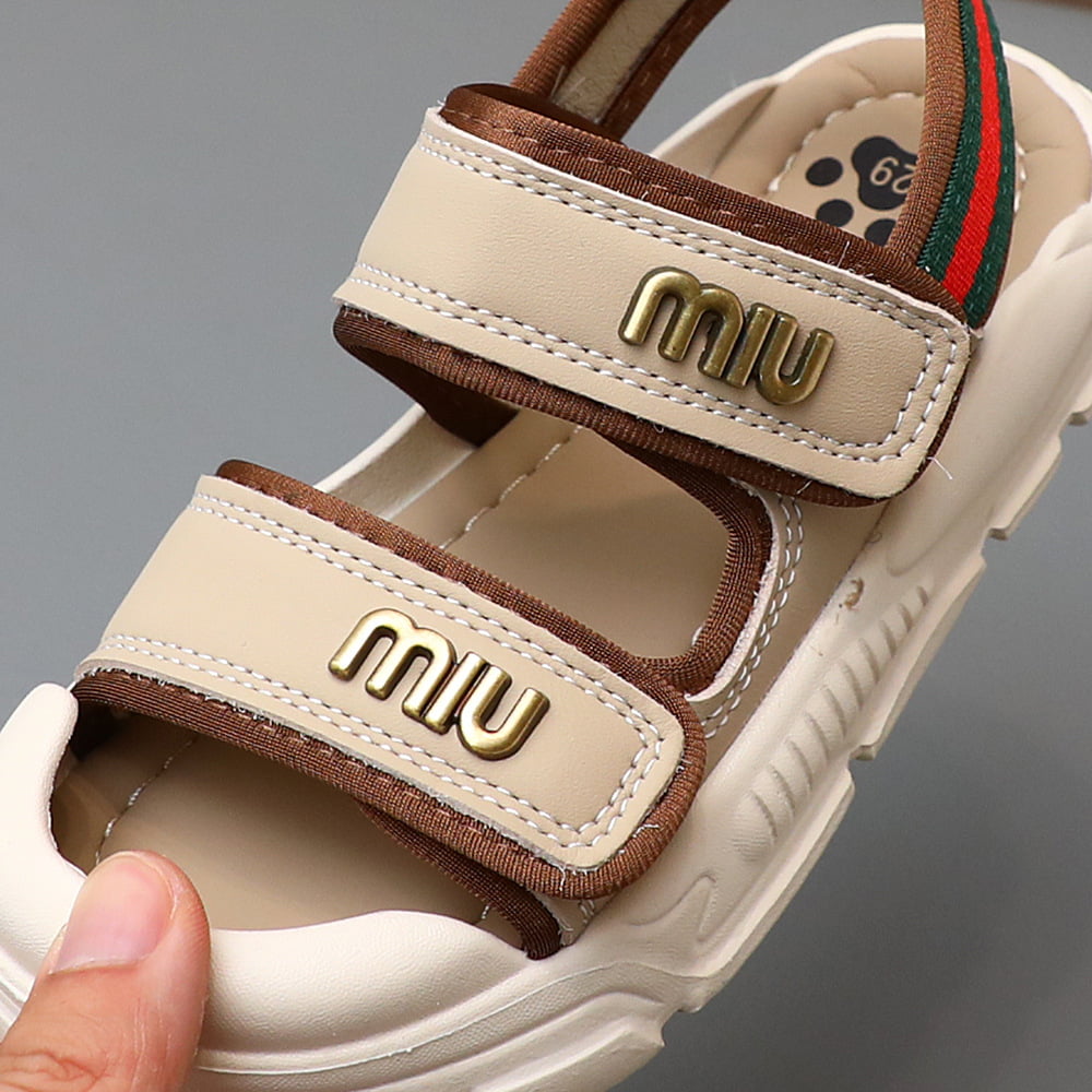 Sandale cu protecție pentru degete și închidere cu velcro Beige Miu