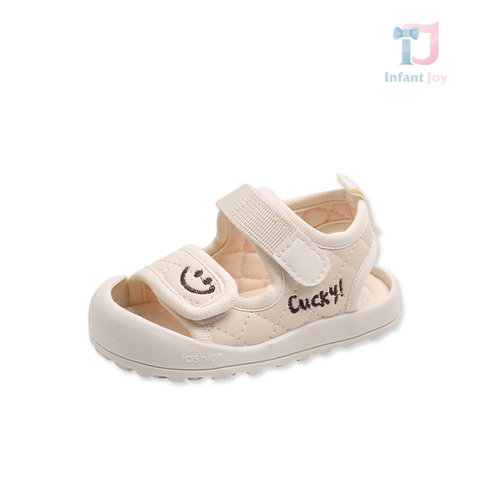 Sandale cu protecție pentru degete și închidere cu velcro Beige Rhombus