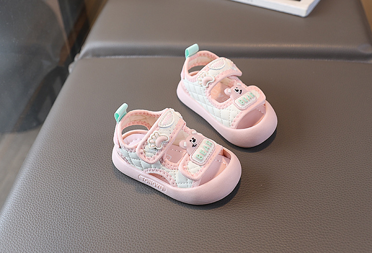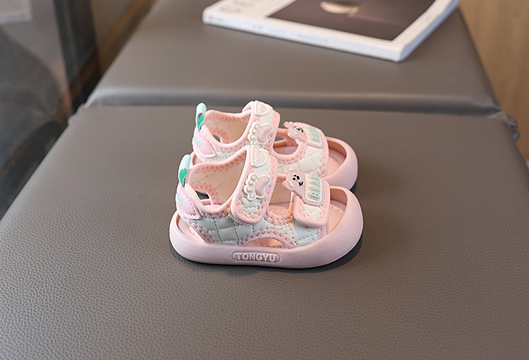 Sandale cu protecție pentru degete și închidere cu velcro Pink Paws