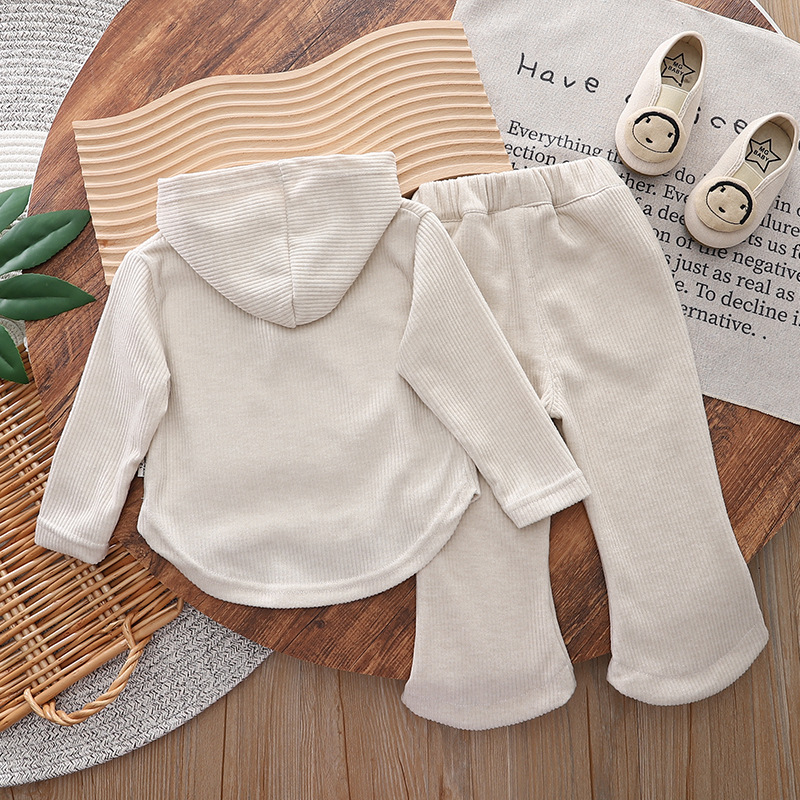 – Pantalon în croială „clopot”, la modă în acest sezon, în aceeași nuanță cu hanoracul. Talie elastică pentru confort și două buzunare frontale practice.