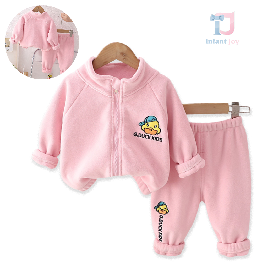 Set sport din 2 piese fleece cu broderie Ducky Pink