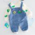 -Salopetă din denim albastru cu efect catifelat, buzunar frontal tip “cangur”, bretele reglabile prin nasturi, terminate cu elemente 3D.
