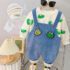 Set matlasat 2 piese cu salopeta cu efect de catifea si broderie Green Dinos