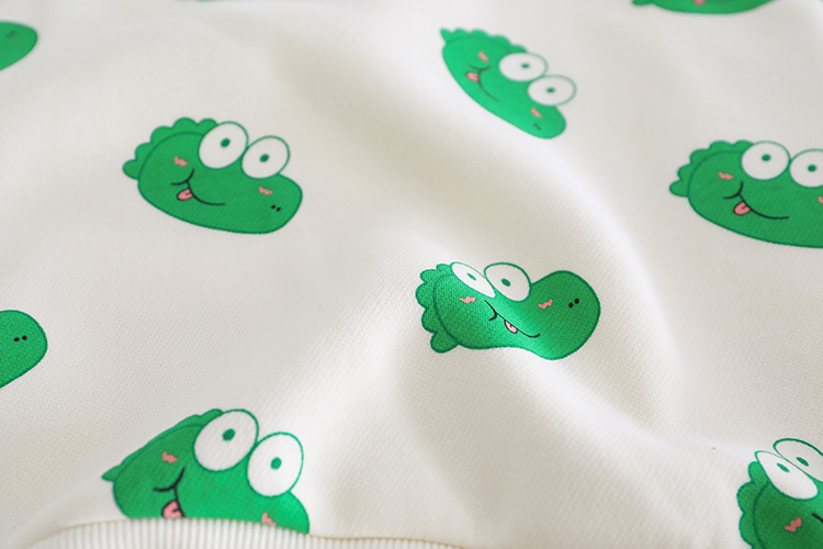 -Bluziță/hanorac în nuanță vanilie, cu imprimeu cu mulți dinozauri, manșete elastice la mâneci și talie pentru un plus de confort.