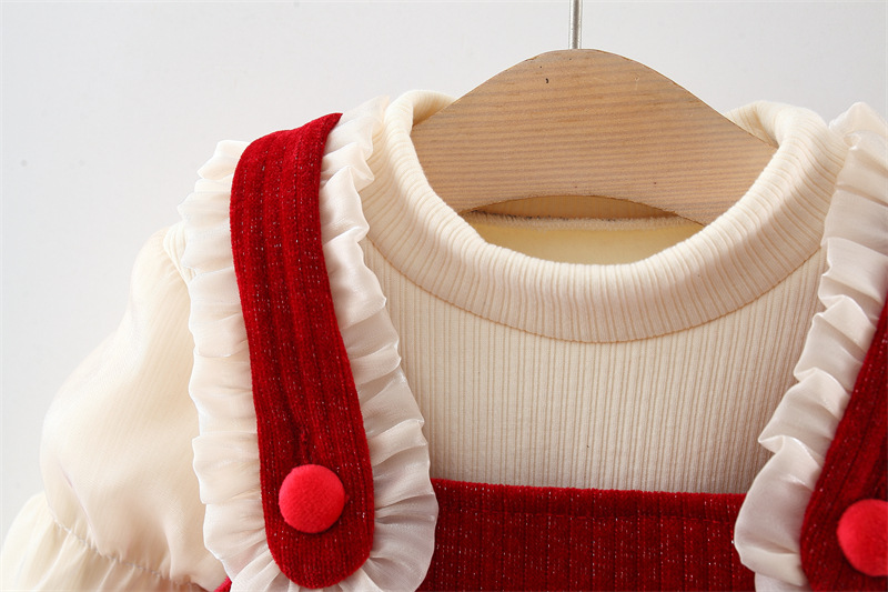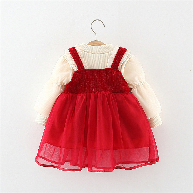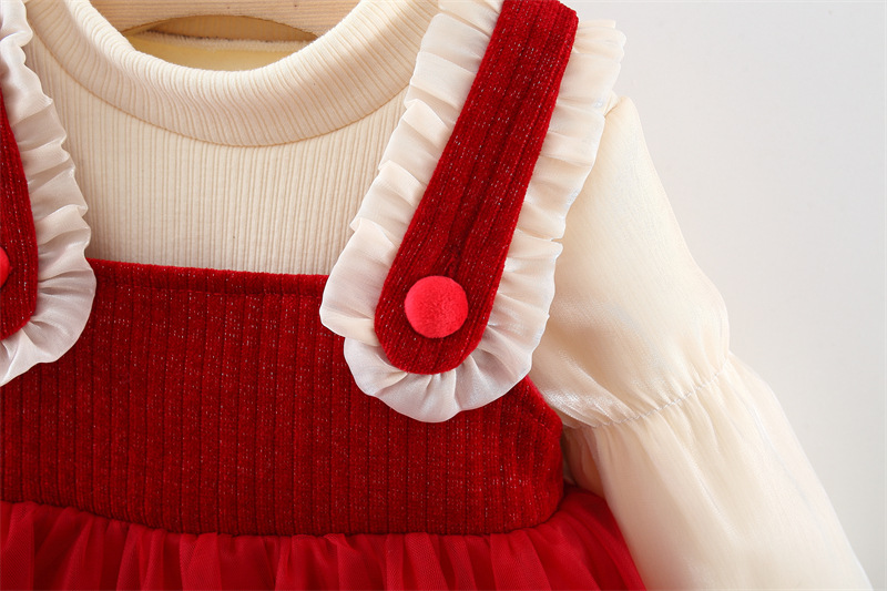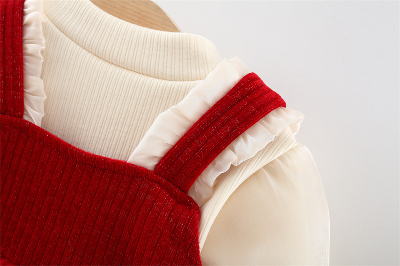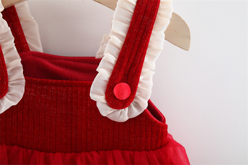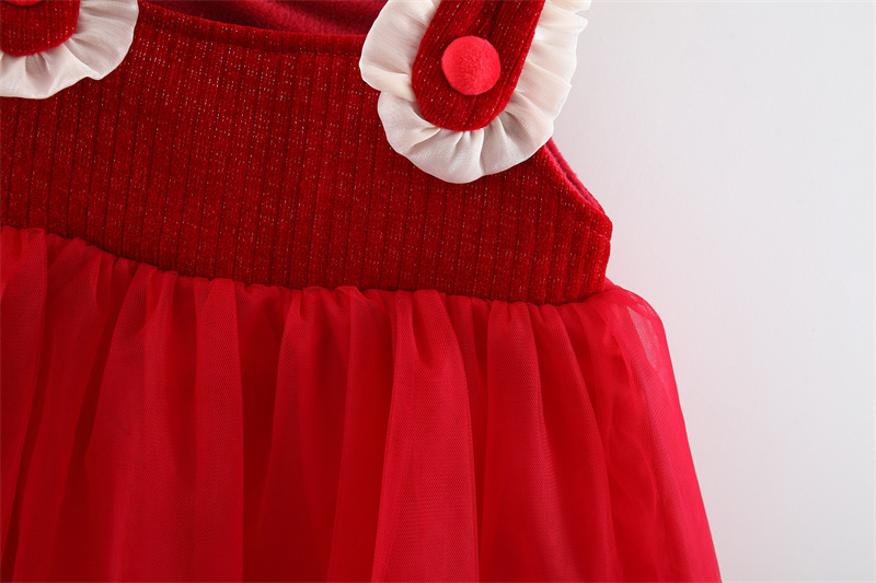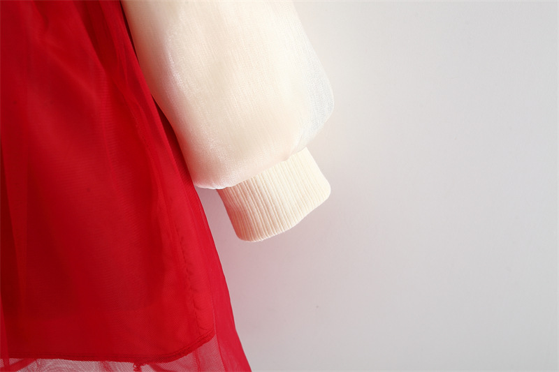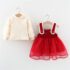 Set premium din 2 piese cu cămașă din organza și rochie din catifea și tul Red Pretty Queen