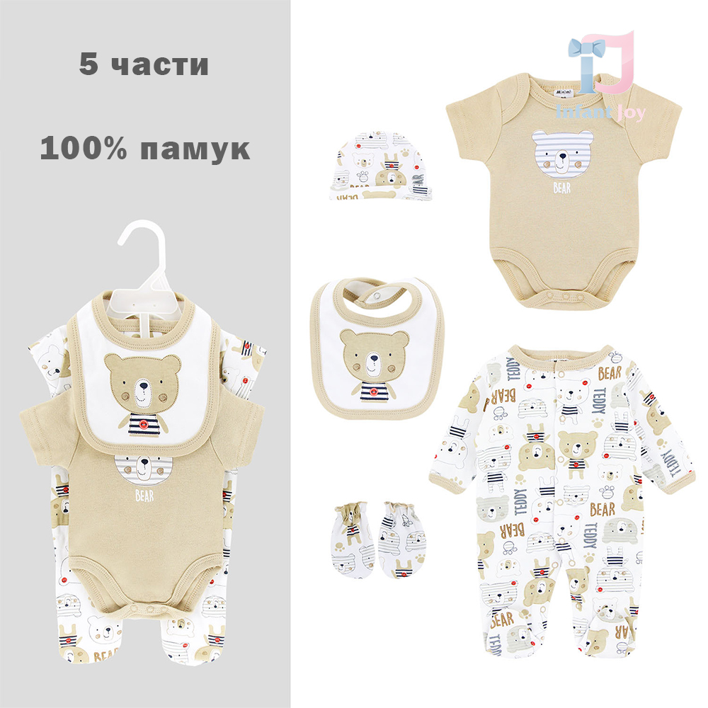 Set 5 piese, 100% Bumbac pentru nou-nascuti Teddy Bear