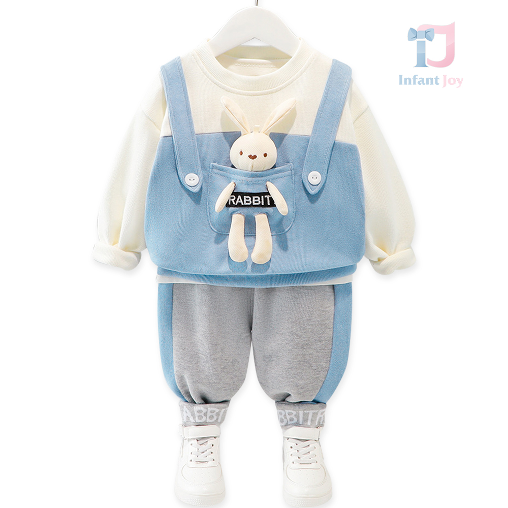 Set de 3 piese din tricot fin cu jucărie de plus Blue Rabbit