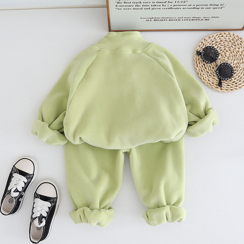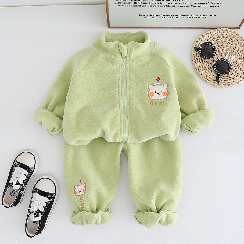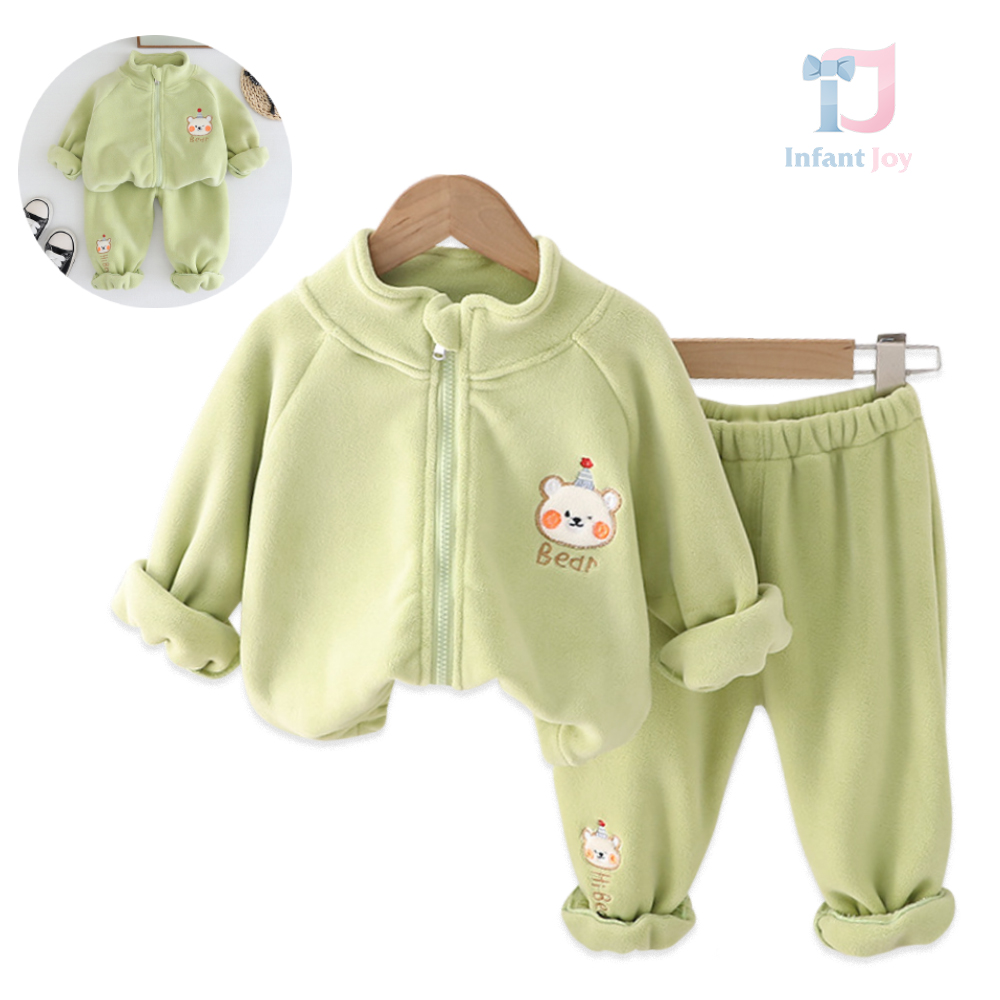 Set de 2 piese din pluș cu guler înalt și broderie Bear Party Green