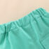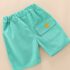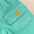 -Pantaloni scurți comozi din denim, în nuanță intensă de turcoaz, cu talie elastică pentru confort + buzunar mare, extravagant pe un crac, cu emblemă aplicată.