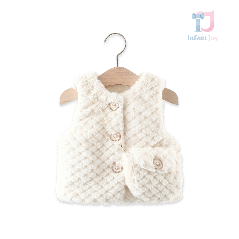 Set de 2 piese vestă pufoasă și geantă cu perle Beige Beauty