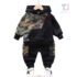 Set sport de 2 piese cu glugă și buzunar Black Camo