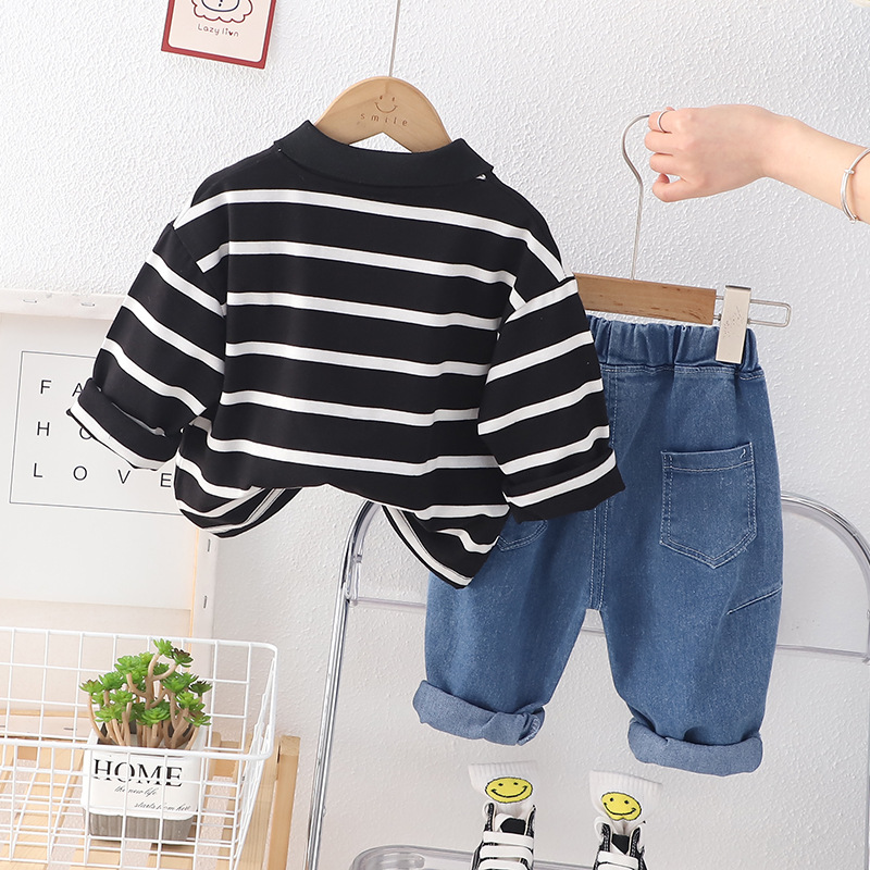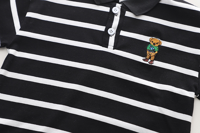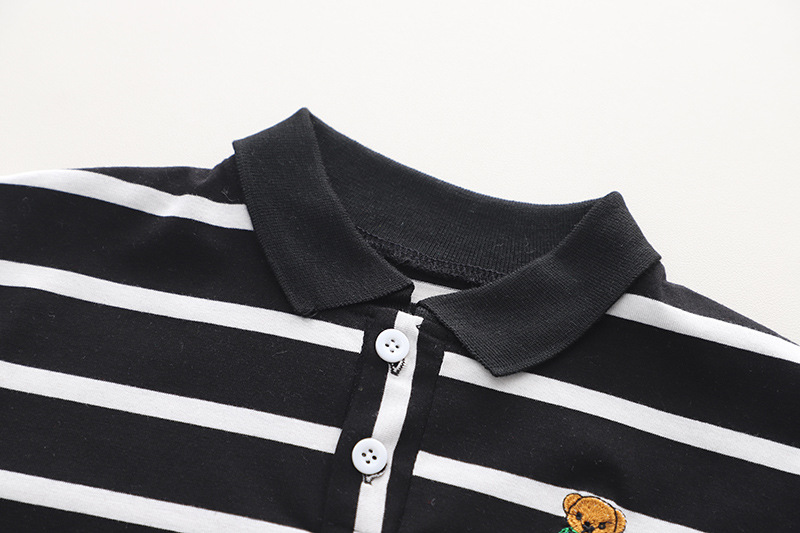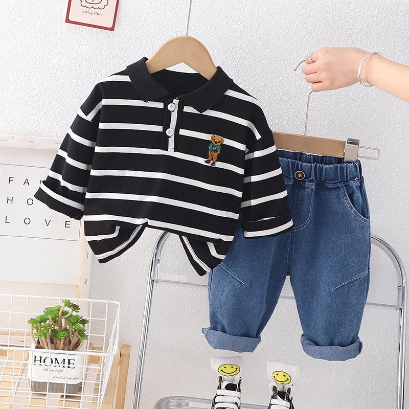 Set de 2 piese cu guler clasic, broderie și blugi Black & White Bear