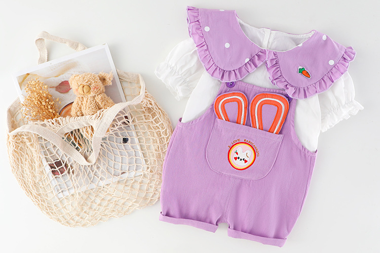 Set de 2 piese cu mâneci bufante, elemente 3D și guler spectaculos Bunny’s Carrot