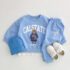 -Bluză de culoare albastru deschis, din material moale de bumbac. Model realizat în stilul oversize, la modă în acest sezon, cu un element imprimat ce reprezintă un ursuleț și un text + aplicație suplimentară în partea de jos pentru un aspect modern.