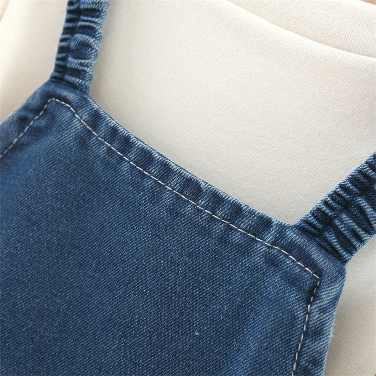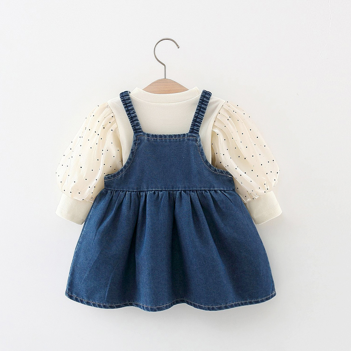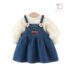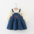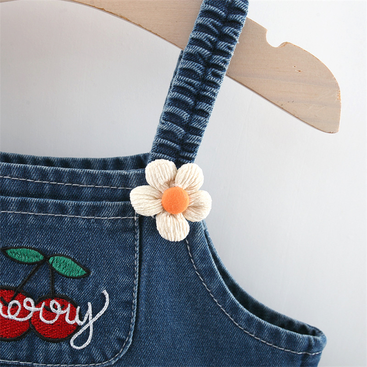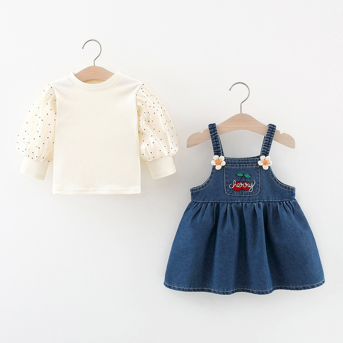 Set de 2 piese rochie din denim cu broderie, si bluza cu maneca bufanta Cherry Flower