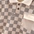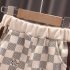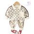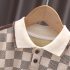 – Cămașă din material relief de culoare crem, cu un model subtil în carouri șah în nuanțe de bej și maro închis. Guler clasic, două nasturi și buzunar funcțional la piept. Banda maro de pe umeri adaugă un accent dinamic.