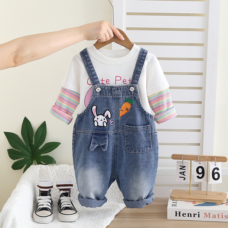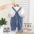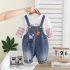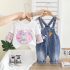 Set de 2 piese cu bluză cu mâneci din material reiat și salopetă din denim Pastel Paws