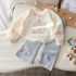 Set de 2 piese cu bluză/hanorac crop cu mâneci bufante și pantaloni din denim cu broderii Fun Park