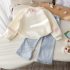 – Pantalon din denim, în nuanță bleu deschis, cu croială dreaptă. Decorat cu broderii frumoase – unicorn și fundiță – care adaugă farmec și veselie. Talie elastică pentru confort sporit la purtare.