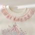 – Bluză crop/hanorac, confecționată din material moale și plăcut la atingere, în nuanță crem lăptos. Decorată cu broderie fermecătoare cu carusel și căluți + volănașe din dantelă fină în jurul decolteului și pe mâneci. Accentele discrete și strălucirea fină oferă o notă romantică și feminină.