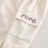 – Pantalon cargo într-o nuanță crem deschis, cu talie elastică confortabilă. Are buzunare cargo laterale, decorate cu inscripțiile „POPO” și „H”, pentru un efect modern street style. Manșetele de la tiv asigură confort și libertate de mișcare.
