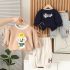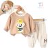 – Bluză/hanorac – într-o nuanță bej delicată, confecționată dintr-un material moale din bumbac. În față are o aplicație 3D mare cu un cățeluș drăguț cu șapcă galbenă și inscripția „PoPo”. Detaliile sunt în relief și plăcute la atingere, ceea ce face modelul și mai jucăuș. Mânecele au manșete, iar croiala este lejeră și confortabilă.
