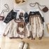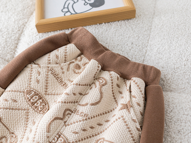 – Pantalon lung, în același stil și imprimeu, cu croială lejeră și talie elastică confortabilă. Manșetele de la bază asigură fixare sigură și libertate de mișcare.
