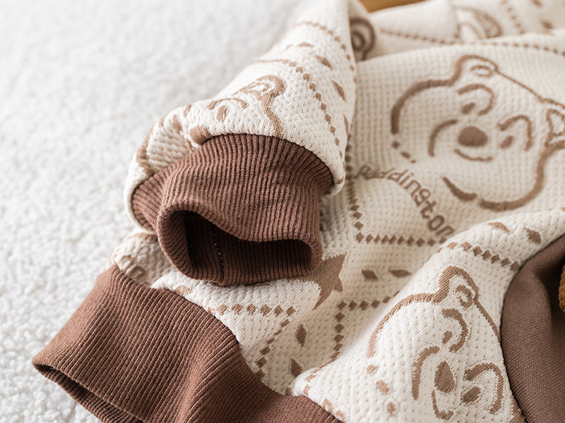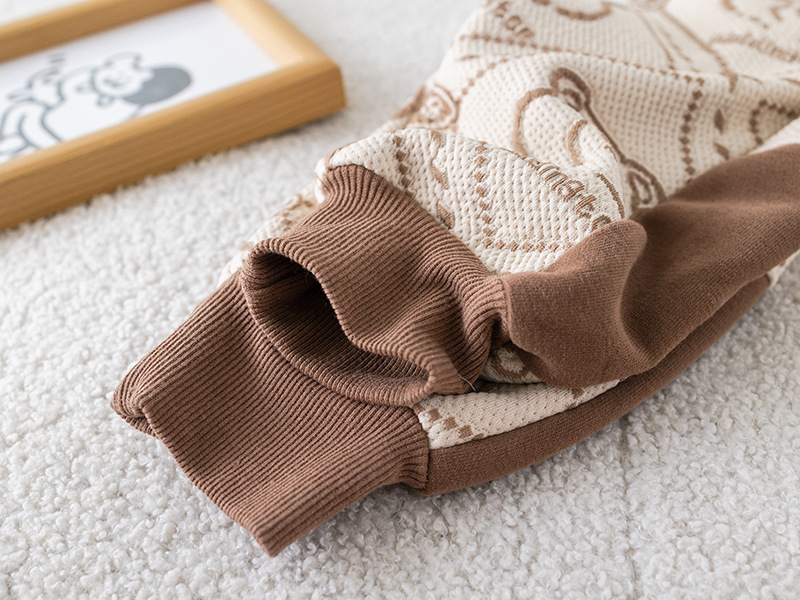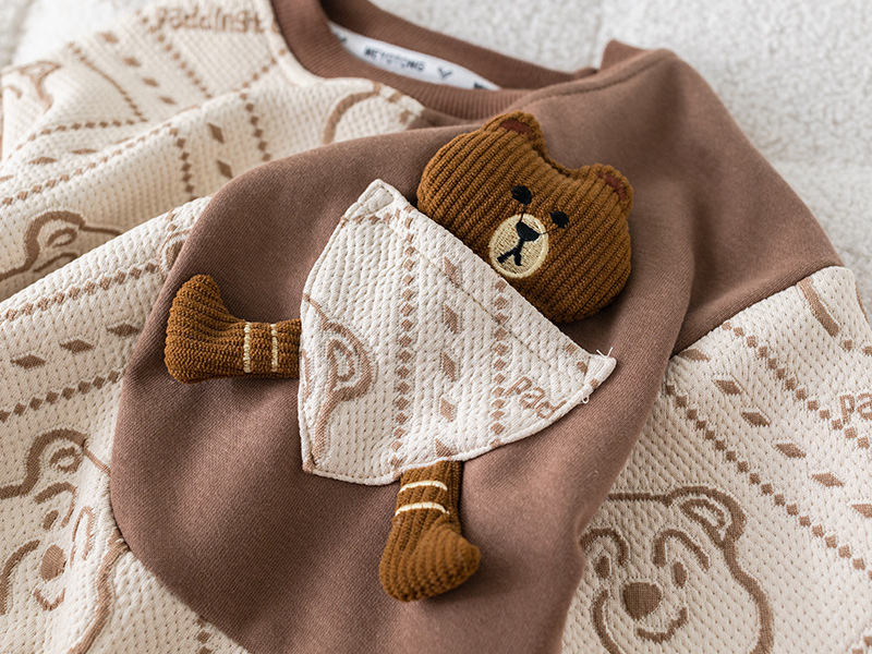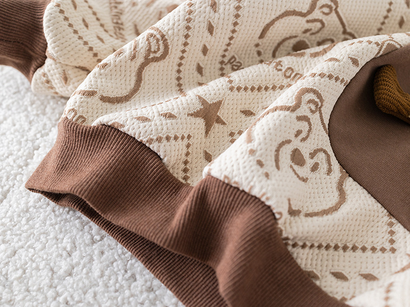 – Bluză cu mânecă lungă, confecționată din material din bumbac cu textură în relief, în nuanțe ciocolatiu și alb, cu design contrastant. Decorată cu imprimeu modern cu ursuleți și element 3D din pluș în față pentru un aspect unic și jucăuș. Manșetele elastice și gulerul rotund oferă confort pe tot parcursul zilei.
