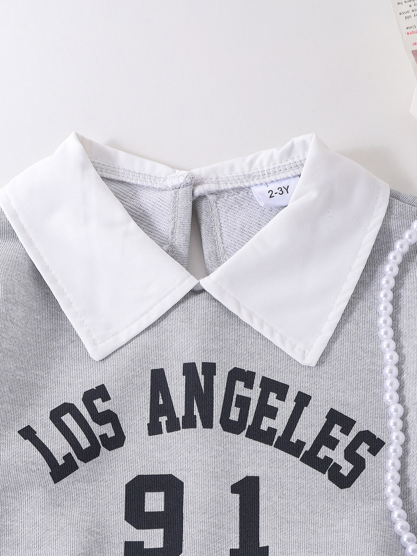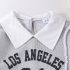 – Hanorac gri melanj, material de înaltă calitate., cu guler clasic alb tip “cămașă”. Guler rotund, mâneci lungi cu manșete rib și tiv jos – pentru o potrivire confortabilă. Imprimeu decorativ “Los Angeles 91” în nuanță închisă, pe partea frontală.