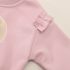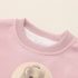 -Bluză, confecționat din material moale și călduros, de culoare roz prăfuit. Decorat cu o imprimare unică cu ursuleț pe partea din față și volane delicate pe umeri, care adaugă un farmec suplimentar.