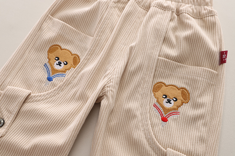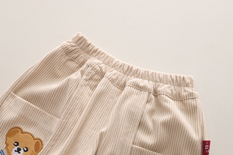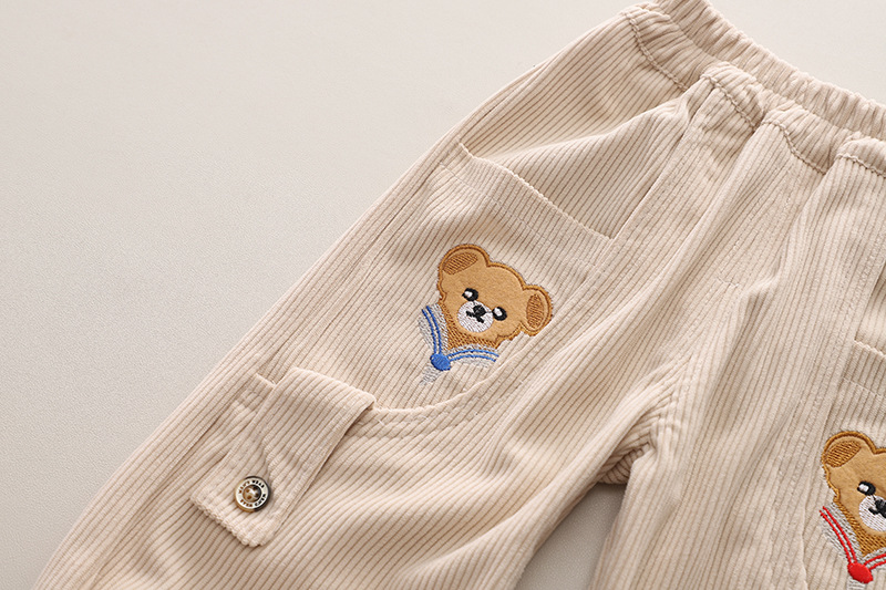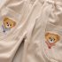-Pantalon de culoare crem. Model cu broderii de ursuleți pe ambele picioare, cusături laterale și două buzunare frontale. Talie și manșete elastice pentru confort maxim în timpul purtării.