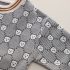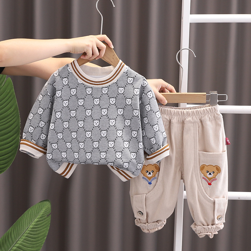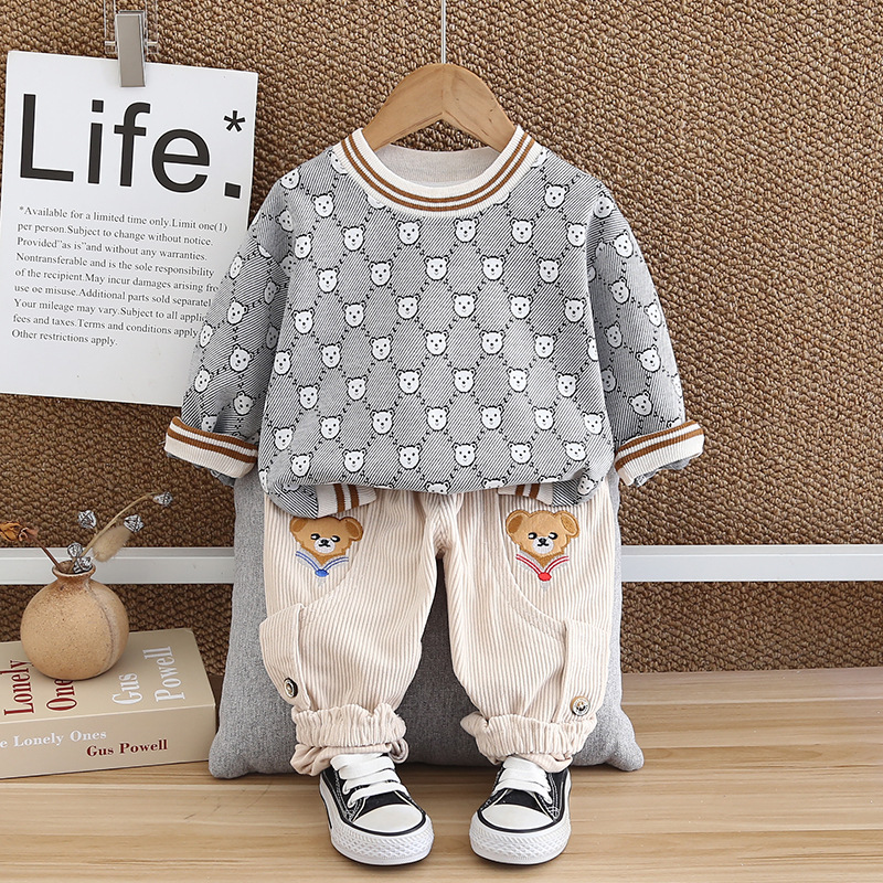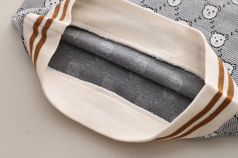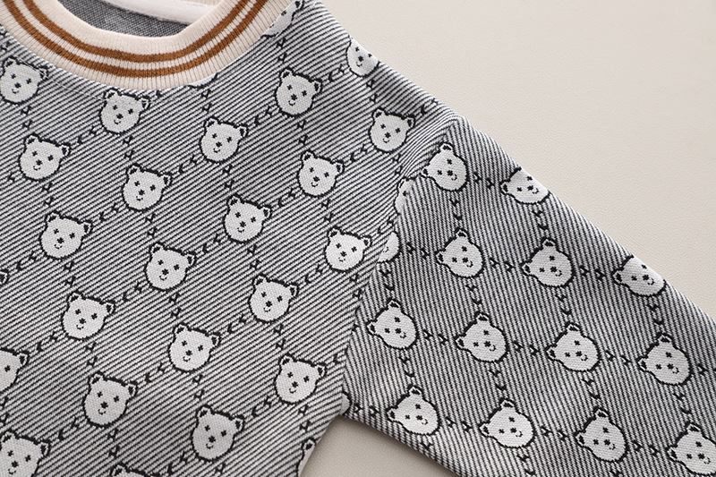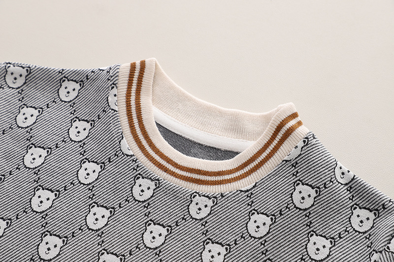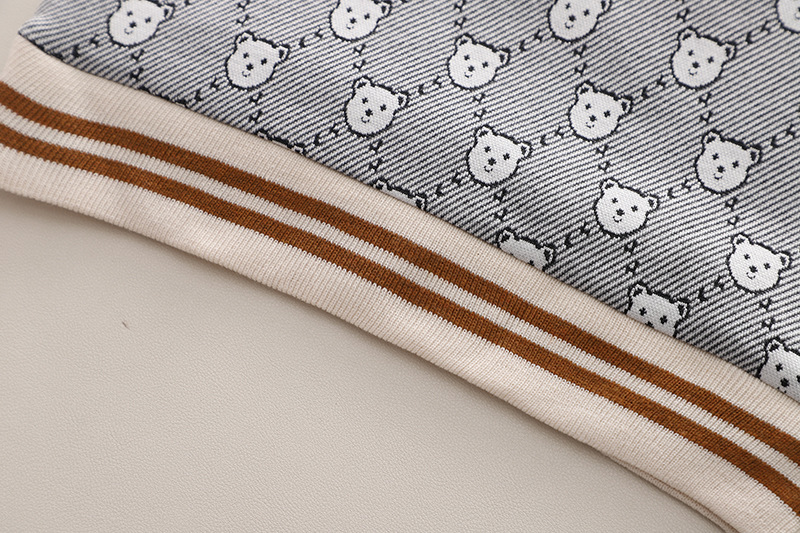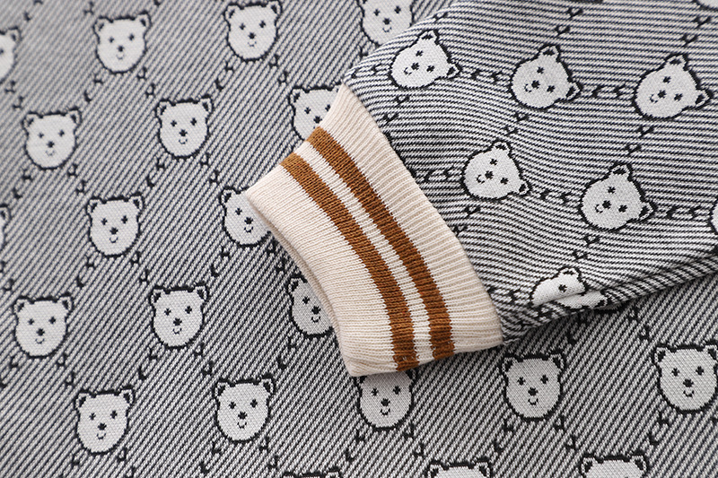 -Bluziță/Hanorac din material de înaltă calitate și rezistent, în alb și gri, cu imprimeu de ursuleți. Croială standard cu manșete elastice în dungi bicolore, bej și caramel.