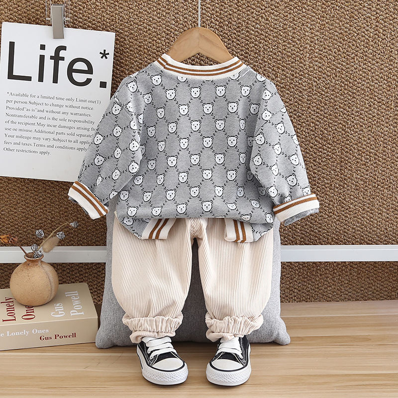 Set de 2 piese cu bluză și pantaloni cu aplicații adăugate Teddy Corduroy