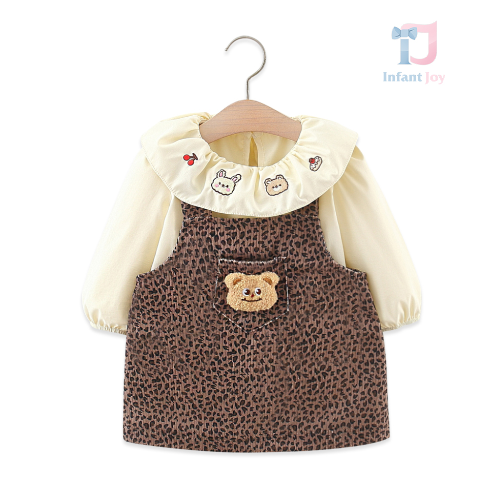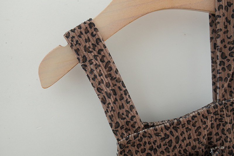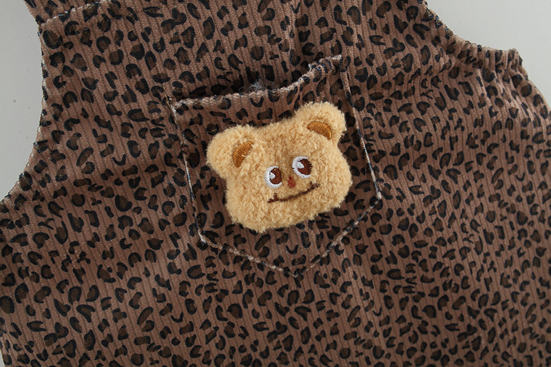 -Rochie din material de înaltă calitate, de culoare ciocolatie, cu imprimeu leopard. Model cu croială gratuit, cu un buzunăraș în partea din față și un element 3D în formă de ursuleț pentru un plus de farmec. Bretele ajustabile, care se închid la spate.