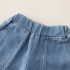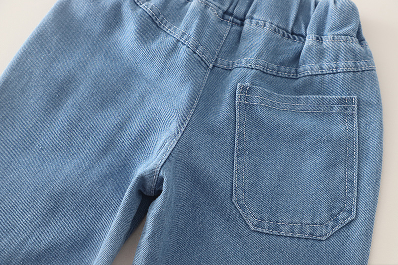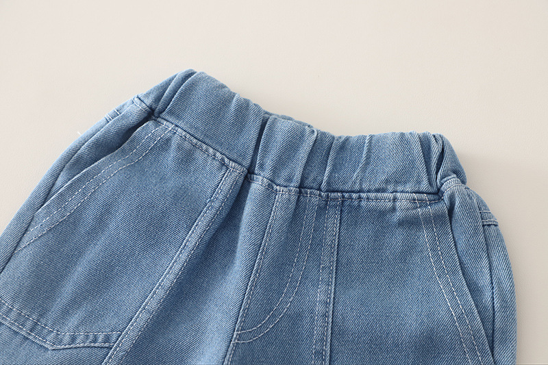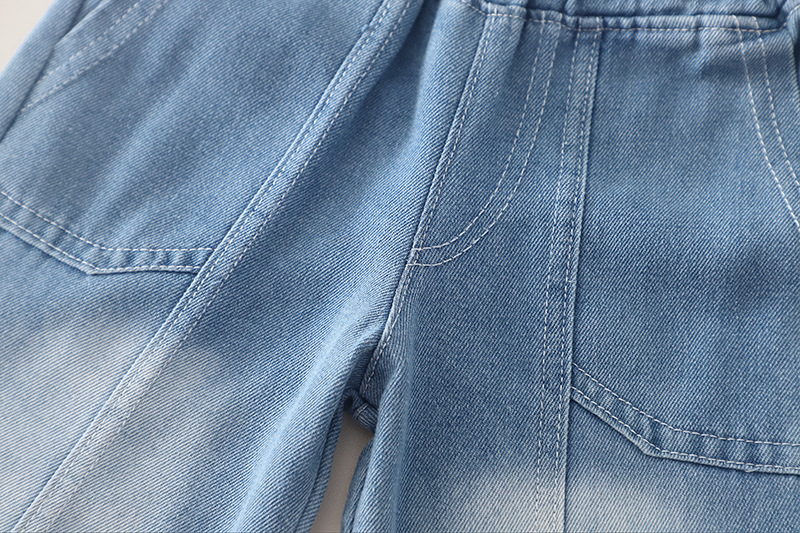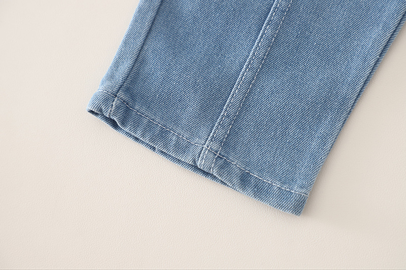 – Pantalon din denim, confecționat din material ușor și moale din denim bleu deschis. Modelul are talie elastică pentru îmbrăcare ușoară și confort la mișcare, buzunare practice și posibilitatea de a fi purtat cu tivurile suflecate pentru un stil mai lejer și modern.