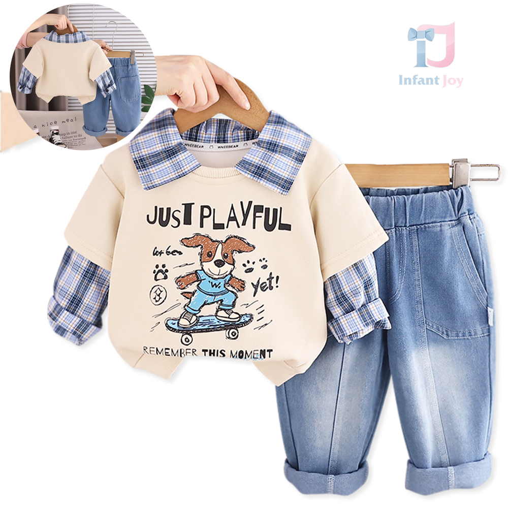 Set de 2 piese cu bluză/sweatshirt cu cămașă atașată și pantaloni din denim Just Playful