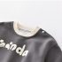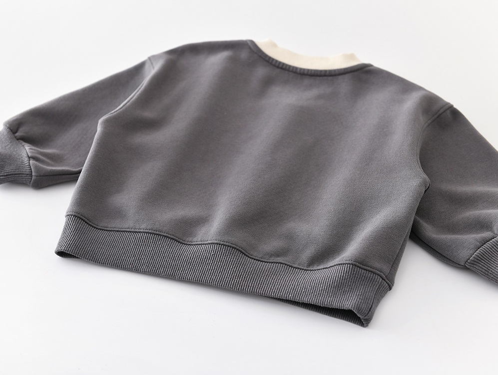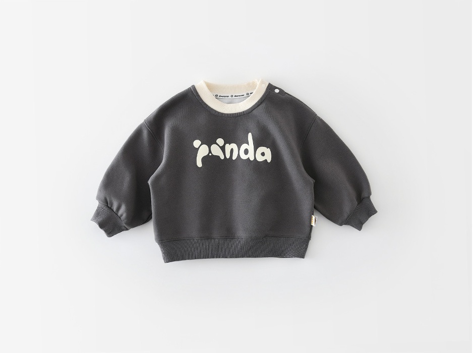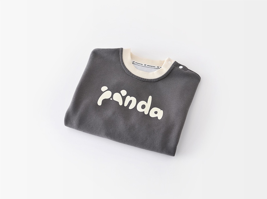 – Bluză tip sweatshirt cu mânecă lungă, realizată din material de bumbac de înaltă calitate. Modelul este într-o nuanță modernă de gri antracit, cu decolteu rotund și terminații din tricot reiat în ton crem. Accentul îl reprezintă inscripția veselă „PANDA” din față, care oferă un aspect jucăuș și modern. Un nasture tip tic-tac pe umăr facilitează îmbrăcarea.