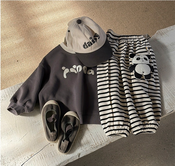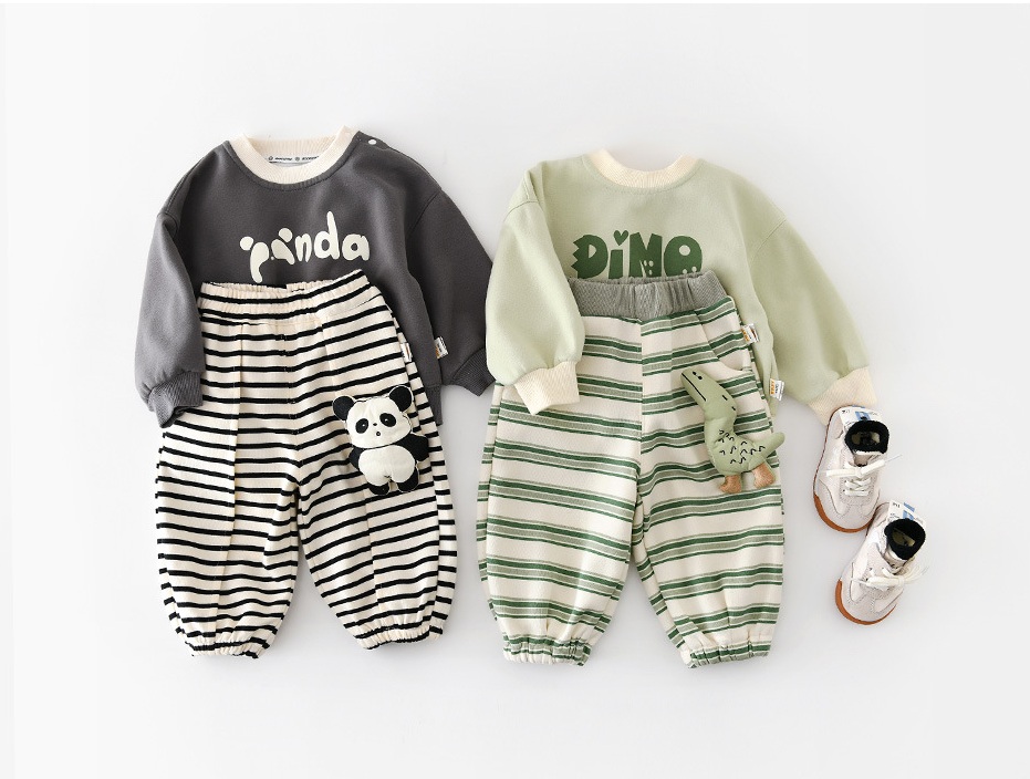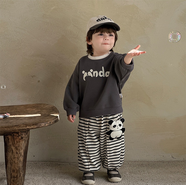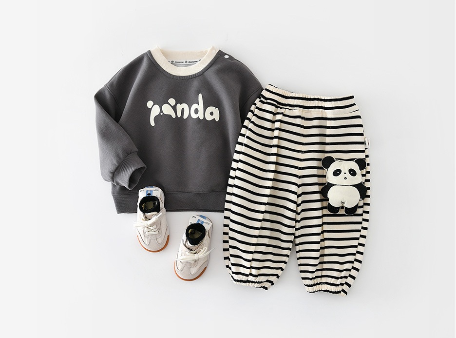 🐼Set proaspăt și extrem de drăguț din 2 piese pentru băiat – confortabil, jucăuș și creat pentru un stil de zi cu zi comod, cu caracter copilăresc.