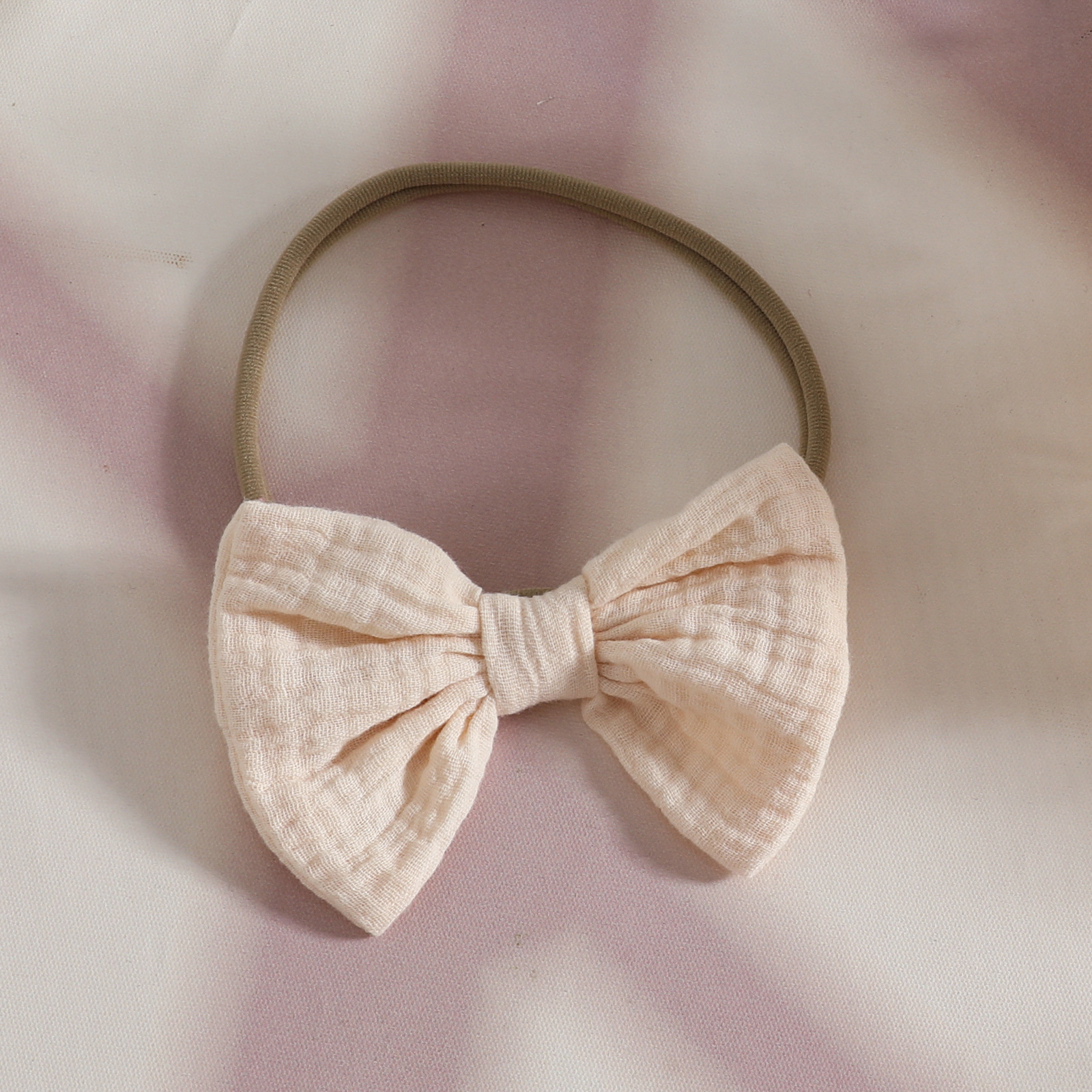 -Bentiță pentru cap, cu fundiță textilă în aceeași culoare – delicată și elastică.
