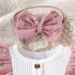 – Bentiță asortată cu rochița – realizată din același material roz cu floricele delicate și accesorizată сu o fundă mare ce completează ținuta cu farmec și finețe.