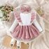 – Body/rochiță confecționată din material tricotat rib de înaltă calitate în partea superioară și denim fin cu imprimeu floral în nuanță roz pudrat. Modelul este decorat cu volănașe cu bordură din dantelă pe umeri și o fundă mare în față, care oferă o notă elegantă. Închiderea cu capse în partea de jos facilitează îmbrăcarea.