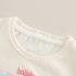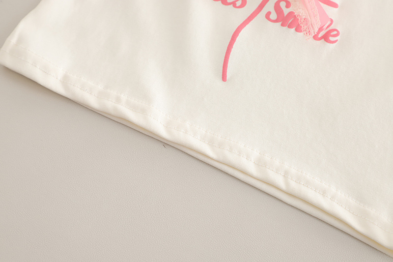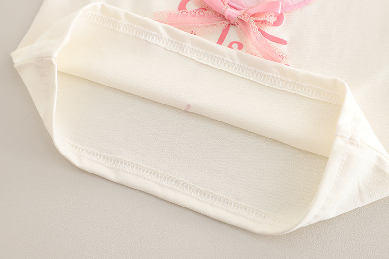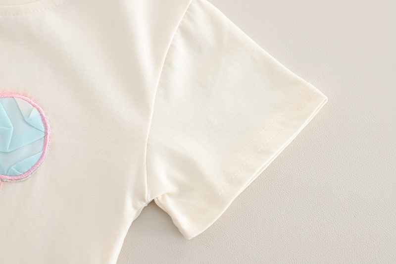 – Tricou din material de calitate superioară, în nuanță crem. Model cu imprimeuri și aplicație 3D batik cu fundiță + manșete elastice pentru un plus de confort.