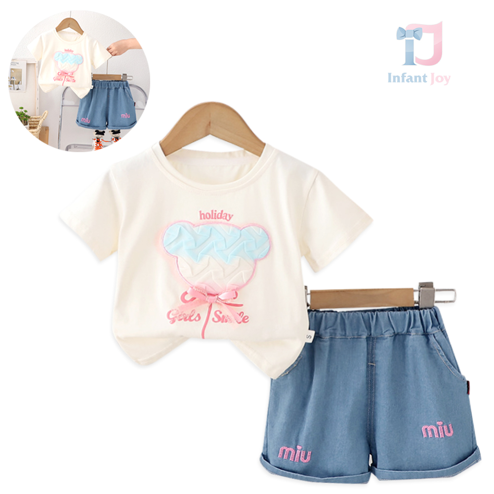 Set de 2 piese cu broderii și elemente 3D efect Summer Bear Delight