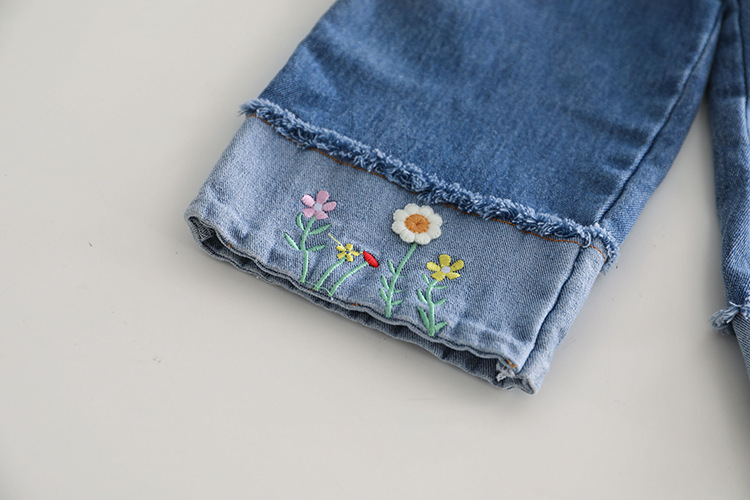 – Pantaloni din denim de înaltă calitate, cu o croială modernă, manșete răsucite și broderie adăugată, talie elastică + două buzunare.