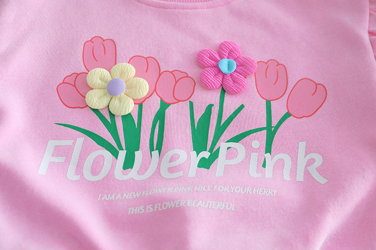 Set de 2 piese cu bucle, flori 3D și broderie Miss Flower Pink
